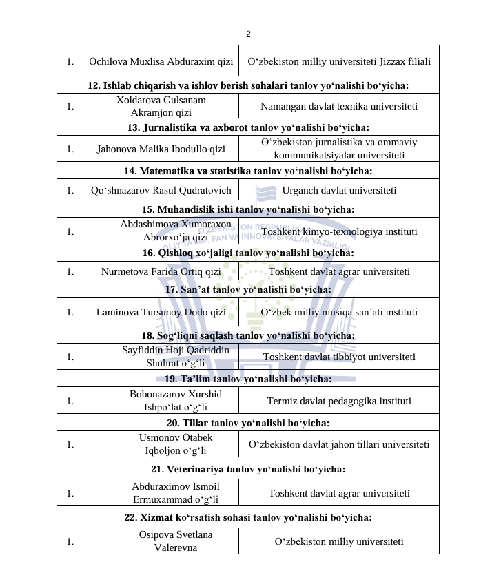 Prezident davlat stipendiyasi g‘oliblari ro‘yxati: